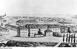 The Hofmühle was not spared the effects of war. During the Thirty Years' War in 1643, General Piccolomini had disposed of the town of Freiberg, gathered his 16,000 troops around Dresden, and chose the village of Plauen and its surroundings as his headquarters. He lived in the Hofmühle from the end of February to March 10, 1643.[19] During the Great Northern War, the Swedes approached Dresden in mid-September 1706 and established themselves in Plauen, where the Hofmühle became their headquarters. They confiscated the flour stored there and intended for the citizens of Dresden, requisitioned the grain stored there and had it ground for themselves. The wheels of the mill that were not needed for this purpose were destroyed. Only the armistice, which came into force at the end of September and led to the Treaty of Altranstädt, prevented even greater damage.[20] In 1809 and 1813 (Battle of Dresden) the then leaseholder suffered from the Napoleonic battles for Dresden.[19]
