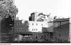 In 1928, after the railroad was raised, a railroad silo was added to the now elevated siding. The wheat mill was enlarged in 1936 ("New Wheat Mill"). In 1938/1939 the silo building with a storage capacity of 5000 tons was built north of the Altplauen road (demolished in 2012).[63][67] With the exception of the demolition of the railway silo after 1945, these were the last external changes until 1990. In 1925, a "test baking line" was set up in the bread factory, which existed until the end of the bread factory and was used for quality assurance and improvement.[70]