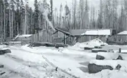 By 1907, the Griffith Sawmill near Bierstadt Lake supplied lumber for nearby farming and ranching settlements. Sawmills often operated through the winter, conveying lumber with sleds, to meet the construction needs of the settlers and shopkeepers. Women moved into the area by 1910, after many buildings had been constructed.[18] Lumber from the sawmill was used in the construction of The Stanley Hotel. In 1910, Griffith moved their sawmill to a spur of Highway 66 [now U.S. Route 34].[19]