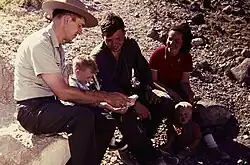 Paleontologists began working at Big Bend National Park site as early as 1907, with the discovery of sharks and ammonite fossils by Johan Udden.[29] Then, from 1938 to 1939, a handful of men worked at three fossil quarries in Big Bend as part of a W.P.A. project. Other fossil hunters, including Barnum Brown and Roland "R.T." Bird, arrived in search of dinosaur remains in 1940. Among other discoveries, Brown and Bird uncovered neck vertebrae of a giant sauropod, Alamosaurus, as well as partial jawbones of a crocodylian species, Deinosuchus.[30]