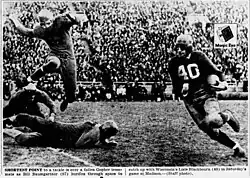 He played college football for the Minnesota Golden Gophers.[2] He was a member of the undefeated 1940 and 1941 Minnesota Golden Gophers football teams that won back-to-back national championships.[3] His arms were so long that the school had to order special jerseys for him.[4]