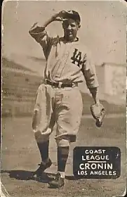 Cronin made his major league debut with the Braves in 1928. Over parts of four seasons with Boston, he collected 68 hits, including 15 doubles and two triples, in 126 games played.[5] In 1930 and 1931, he served as the primary backup catcher to regular Al Spohrer. For most of the rest of that decade, Cronin toiled in the top-level Pacific Coast League. He became a player-manager in 1942, and skippered four minor league clubs over all or parts of four seasons.