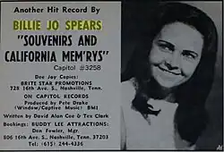 Billie Jo Spears in a magazine advertisement for her 1972 single, "Souvenirs and California Memories".