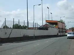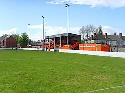 Early in the club's history they played at Prouds Lane,[11] using the nearby Spread Eagle pub as their changing room. They moved to Queen Street after in 1919, with the opening game played against Tamworth Castle in the FA Cup, with Bilston winning 1–0.[12] Floodlights were installed in 1953 and were first used for a match against Wolverhampton Wanderers on 10 March 1953, with a record attendance of 8,000 seeing Wolves win 4–2.[13] The ground's record attendance for a competitive game was set in 1968–69 for the FA Cup first round match against Halifax Town, when 4,300 spectators attended the game.[12]
