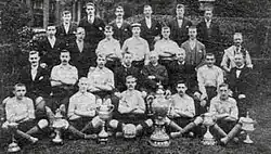 Bilston players pictured in 1901 with the six trophies they won that season
