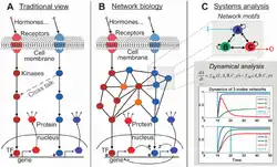 Signals are transduced within cells or in between cells and thus form complex signaling networks which plays a key role in the tissue structure. For instance, the MAPK/ERK pathway is transduced from the cell surface to the cell nucleus by a series of protein-protein interactions, phosphorylation reactions, and other events.[20] Signaling networks typically integrate protein–protein interaction networks, gene regulatory networks, and metabolic networks.[21][22] Single cell sequencing technologies allows the extraction of inter-cellular signaling, an example is NicheNet, which allows to modeling intercellular communication by linking ligands to target genes.[23]