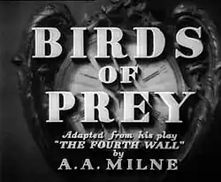 Birds of Prey, also known in the United States as The Perfect Alibi, is a 1930 British mystery film produced and directed by Basil Dean, from a screenplay he co-wrote with A.A. Milne from Milne's play which was known as The Perfect Alibi in the United States and The Fourth Wall in the United Kingdom. The film stars Dorothy Boyd, Robert Loraine, Warwick Ward, C. Aubrey Smith, Frank Lawton, and Robert Loraine, and was produced at Beaconsfield Studios by Associated Talking Pictures.[3]