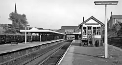 The outer platform faces were hardly used, apart from a handful of trains which were stored outside peak hours in the sidings which remained at all four corners of the station,[5] and outside the island platforms. In the 1970s, there were a number of rationalisations to the layout. At one stage, through trains used the outer tracks of the station, while a bay platform was fashioned between these to allow a short-lived Liverpool-to-Birkenhead Park extra peak-hour shuttle service. The layout was then simplified again to the current one, retaining the former southern island platform with just a through road either side,[12] with the former northern platform demolished in 1992.[5][13]