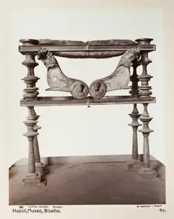 The image of an honor was frequently placed on a tomb of the biselliarius, often with an epitath recording the honor bisellii award (unlike the curule seat or fasces, images of which on the tomb were never accompanied by text).[10] A small group of reliefs includes a wreath resting on the bisellium with unclear meaning.[11]