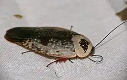 They are the only ovoviviparous cockroach family.[3][4] The ootheca is seen very briefly before being retracted into the body, where soon after the young nymphs hatch inside, the female gives live birth. The cerci are smaller compared to other families, and most of the time are covered by wings.[5] They're mostly found in caves, rotting logs or buried under leaf litter. Many are often kept as pets or as feeder insects, such as Blaberus, Gromphadorhina or Macropanesthia.