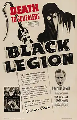 Black Legion is a 1937 American crime drama film, directed by Archie Mayo, with a script by Abem Finkel and William Wister Haines based on an original story by producer Robert Lord. The film stars Humphrey Bogart, Dick Foran, Erin O'Brien-Moore and Ann Sheridan. It is a fictionalized treatment of the historic Black Legion of the 1930s in Michigan, a white terrorist group. A third of its members lived in Detroit, which had also been a center of the Ku Klux Klan in the 1920s.