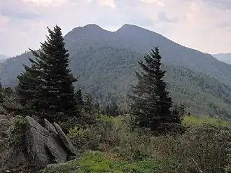 | Balsam Cone | 6,611 ft/2,015 m | North-central Blacks | 35.789705, −82.255846 | Fraser fir tree, previously known as balsam fir |