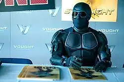 Black Noir[4] is the name of three characters from the comic book series The Boys, created by Garth Ennis and Darick Robertson, and the television series and franchise of the same name, developed by Eric Kripke. In both the comic and television series, Noir is a member of the hedonistic and reckless Vought-American superhero group the Seven and is depicted as a "silent ninja" type parody of Batman, Snake Eyes and Deathstroke.