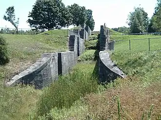![]() Abandoned locks on the Black River Canal in Lewis County, New York. A group of locks like this is known as a combine. Locks 87 - 90. | |