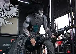 The genre is commonly death metal that incorporates musical, lyrical or ideological elements of black metal, such as an increased use of tremolo picking, anti-Christian or Satanic lyrical themes and chord progressions similar to those used in black metal.[3] Blackened death metal bands are also more likely to wear corpse paint and suits of armour, than bands from other styles of death metal.[4] Lower range guitar tunings, death growls and abrupt tempo changes are common in the genre.[5] Some blackened death metal bands, such as Goatwhore and Angelcorpse, even take significant influence from thrash metal.[5]