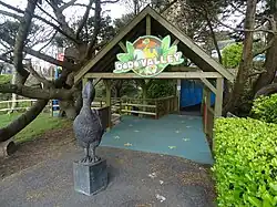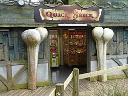 | Fort Tortuga | 1997 | 2007 | Themed pirate fort play area, with slides, climbing nets and raised walkways. Also in the fort was a strongroom containing a locked treasure chest and a giant compass. Hidden around the fort were four compass directions. Entering these into the compass opened the treasure chest, revealing pirate gold inside. This area was replaced by The Wight Experience in 2008. The skull from the entrance of fort tortuga was reused at the entrance to the pirates play area near dodo valley. Two of the bones have been reused outside of the Quack Shack . | ![]() | |