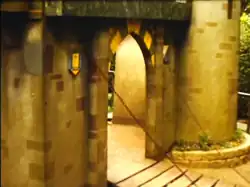 | Rumpus Clock Tower | 1994 | 2005 | Animated clock tower which formed the entrance to the bridge towards Rumpus Mansion. At fifteen and thirty minute intervals, various monsters and goblins emerged from behind doors. Upon the hour, a trow lifted the roof up, and two giant gargoyles next to the clock rocked back and forth. A surviving goblin can be found at the entrance to the current fairyland . A surviving gargoyle can be found near rumpus lawn by a pathway. | ![]() | |