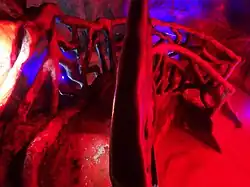 In 2016, The Triassic Club attraction was removed, and the area was redeveloped as a new, larger space for 'The Mouth of Hell', which is now encircled by a new walkway themed with fallen angel statues and demonic sounds.