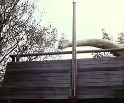 | Observatory Platform | unknown | 1980s | A white painted metal rectangular observatory located on top of one of the entrance buildings as seen in an old film .
