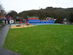 | Pirate Cove | 2012 | Themed area featuring a pirate play ship 'The Flying Raven' and a French frigate 'L' Mistral'. Onboard are water cannons that can be aimed at the opposing ship. The cove also features the Crossbones play area, opened in 2007, with climbing nets, rope bridges and slides. Several themed buildings surround the pirate ships, including 'The Vortex' (see separate description) and a pirate shooting gallery.