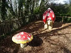 Also in Nurseryland is the wishing tree, a tree that houses a family of musical pixies. A vicar on a seat provides a popular photo opportunity, along with a toadstool which since the 1990s has had its date changed annually to the corresponding year. Nurseryland was sited on an area previously on park maps named as the fern Glen. It was expanded for the 1980 season with new additions. Little Miss Muffet was removed circa 2020. As of 2025 NurseryLand has a new perimeter fence . As of 2025 a new entrance pathway is going in nearer the chine café. As of 2025 the NurseryLand lookout viewpoint platform and talking telescope have been removed due to continual cliff erosion in the area . |