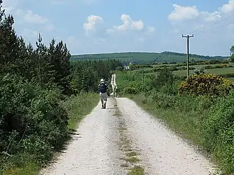The Avondhu Way section crosses the Knockmealdown Mountains to reach the town of Fermoy and then crosses the northern flanks of the Nagle Mountains to reach Bweeng via Ballyhooly and Ballynamona.[5] The Duhallow Way section crosses the Boggeragh and Derrynasaggart Mountains to reach Shrone via Millstreet.[6]