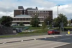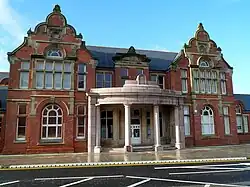 Until 2021 the council was based at Ebbw Vale Civic Centre, which had been built in the 1960s for the former Ebbw Vale Urban District Council. In 2021 the council voted to demolish the civic centre and moved its meeting place and headquarters to the General Office building adjoining Ebbw Vale Town railway station.[40] The General Office building had been built in 1916 as the offices for the Ebbw Vale Iron and Steel Company.[41] The refurbished and extended building also serves as a conference centre and houses Gwent Archives.[42]