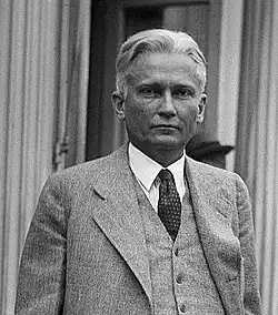 Legislative activity initially focused on the Senate. Among the bills filed at the start of the session was one by Senator Hiram Bingham III (R-Conn.), which amended the Volstead Act to permit the manufacture of beer which was 4 percent alcohol by weight. His bill would not have modified the 18th Amendment.[6] Republican "wets" were able to win a minor victory on December 23, 1931, when they secured an agreement establishing a subcommittee of the Senate Judiciary Committee which would hold hearings regarding modification of the Volstead Act and repeal of the 18th Amendment.[7] Senator John J. Blaine (R-Wisc.), a leader of the Senate's Republican "wets",[4] was named subcommittee chair.[8] Although the five-member subcommittee had a three-member "dry" majority,[8] "wets" only wanted to use the subcommittee to lay the groundwork for a vote (at some indeterminate future) on a Prohibition bill (of some undetermined type).[7] "Wets" won another victory a few days later when the Senate Committee on Manufactures agreed to hold hearings on Bingham's 4 percent beer bill.[6]