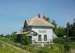 A number of heritage buildings are located within the community: St. Andrew's Roman Catholic Church built in 1914,[6] the Doukhobor Prayer Home (meeting house) built in 1931[7] and the CN Station Building built in 1912.[5] The Doukhobor Dugout House is a Provincial Heritage Property 18 km (12 mi) southeast of the town.