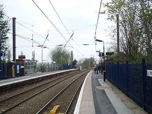 Blake Street railway station serves the Hill Hook area of Sutton Coldfield, Birmingham, England. It is sited on the Cross-City Line between Bromsgrove/Redditch and Lichfield Trent Valley, via Birmingham New Street. The station located on the county boundary between the West Midlands and Staffordshire. It is managed by West Midlands Trains, who operate all trains serving the station.