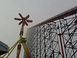 Bling was an amusement ride located within Blackpool Pleasure Beach in Lancashire, North West England. The "Star Shape" ride was built by German company Zierer in 2004, the second of three to have been built to date (the first and third being on the travelling fair circuit in Germany and the UK respectively). Bling was one of the newest additions to Pleasure Beach and was situated at the far end of the park adjacent to Burger King. It was the park's fourth tallest ride after the Pepsi Max Big One, Ice Blast and Infusion.