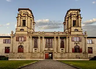 Bloemfontein City Hall (Afrikaans: Stadhuis van Bloemfontein or Bloemfontein-stadsaal) is a historic building in Bloemfontein which houses the local city council. The building was completed in 1936 and burned by protestors in 2017.