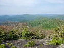 Blood Mountain is the highest peak on the Georgia section of the Appalachian Trail and the sixth-tallest mountain in Georgia, with an elevation of 4,458 feet (1,359 m).[3][4] It is located on the border of Lumpkin County with Union County and is within the boundaries of the Chattahoochee National Forest and the Blood Mountain Wilderness. There are several waterfalls, hiking trails and other recreational areas in the vicinity. This mountain marks the southernmost range limit for many Northern and Appalachian species, especially for plant species.