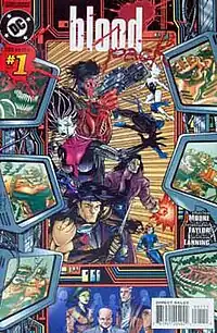"Bloodlines" is a 1993 comic book story arc published by DC Comics. It was an intracompany crossover that ran through DC's superhero annuals and concluded with a two-issue Bloodbath miniseries written by Dan Raspler. The antagonists were a race of monstrous dragon-like aliens who killed humans for their spinal fluid. A small fraction of the parasite's victims survived and become super-heroes via their ordeal. This plot device introduced a wave of "New Blood" superheroes into the DC Universe. Seven DC Comics series were spun out of the event: Blood Pack, Razorsharp and the Psyba-Rats, Hitman, Anima, Loose Cannon, Argus and Gunfire.