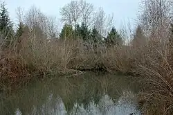 Wetland plants near ponds north and west of the lake include cattails and rushes that provide habitat for marsh birds such as red-winged blackbirds. Swallows are common in summer, and American goldfinches and other migratory birds visit the park in large number. Cottonwoods, alders, dogwoods, willows, and conifers grow in the park as do many shrubs including elderberries, spiraea, and Oregon-grape. The park is frequented by muskrats, voles, raccoons, and the occasional coyote.[11]