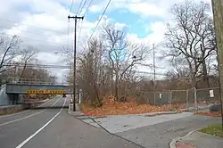 The driveway to LIRR's Blue Point station on the Montauk Line (closed) near the Blue Point Avenue Overpass