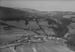Areal view of Boécourt, 1955, from the archives of ETH Zurich