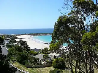Boat Harbour Beach is a small seaside township located about 15 kilometres (9.3 mi) from Wynyard on the north-west coast of Tasmania. "Boat Harbour" is the name of the locality which surrounds the township. In the 2011 census, Boat Harbour Beach, Boat Harbour and the nearby districts had a population of 429.[1]