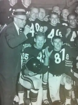The 1945 team was composed of Dick Joliffe, Jerry Ypma, Frank Martin, Bill Carey, Bud Fox, Jim Roberts, Bill Joliffe, Don Zietler, Bernie Zietler, Bill Poole, Irving Manville, Nelson Sweitzer, Bob Crain, Dick Hardy, Jack Mol, Bernie Ward Jr., Don Brown, Em Howe, Lyle King, Bob Carey, Vince Olach, Jack Roberts, Cliff Lagerman, Bob Shanahan, Warren Shadko, Dick Donaldson, Arnie Loper, Des Milligan, Jack Kline and Pat Martin. The manager was Chuck Fairbanks, who went on to play football at Michigan State. Fairbanks later served as Head Coach at the University of Oklahoma, the University of Colorado (Boulder) and in the NFL as Head Coach of the New England Patriots.