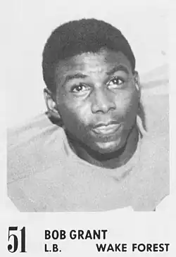 Bob Grant (October 14, 1946 – May 19, 2024) was an American professional football player who was a linebacker in the National Football League (NFL) for the Baltimore Colts and Washington Redskins. He played college football for the Wake Forest Demon Deacons and was selected in the second round of the 1968 NFL draft. Grant died in San Pedro, Los Angeles on May 19, 2024, at the age of 77.[1][2]