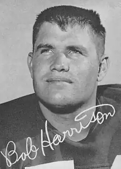 Robert Lucius "Bob" Harrison Jr. (August 8, 1937 – February 4, 2016) was an American football linebacker in the National Football League (NFL) for the San Francisco 49ers, the Philadelphia Eagles, and the Pittsburgh Steelers. He played college football at the University of Oklahoma and was drafted in the second round of the 1959 NFL draft. Harrison died in 2016, aged 78.[1]