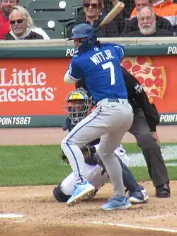 Witt played for Team USA in the 2023 World Baseball Classic. He was the youngest player on the American roster and was primarily a pinch runner and defensive substitute.[52] He played in five games but only got three plate appearances, hitting a double, drawing a walk, and scoring twice.[53][54]