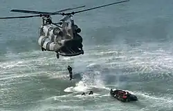 Since the type's inception, the Chinook has carried out various secondary missions, including medical evacuation, disaster relief, search and rescue, aircraft recovery, fire fighting, and heavy construction assistance.[79] In February 2020, the Indian Air Force started using Chinooks at theatres such as Ladakh and Siachen Glacier to assist Indian forces deployed at the Indian borders with China and Pakistan.[80] The Indian Space Research Organisation has also enlisted Indian Air Force Chinooks during the development of its Reusable Launch Vehicle Technology Demonstration Program, with Chinook helicopters air-dropping two test vehicles during the RLV-LEX-01 and RLV-LEX-02 conducted on April 2, 2023, and March 22, 2024, respectively.[81][82][83][84][85]