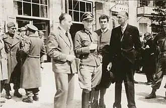 Colonel Bogislaw von Bonin (center) is seen with fellow hostages shortly after their liberation by US forces in South Tyrol on 5 May 1945