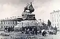The monument at the beginning of the 20th century, with the original inscription, "Bohdan Khmelnitsky, a Single Undivided Russia" visible -