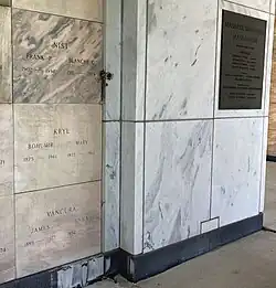 Before his death he was President of the Berwyn (Illinois) National Bank, and was also involved in several savings and loans around the Chicago area.[28] He died at his summer home in Wilmington, New York,[29] on August 7, 1961, leaving an estate valued at over 1 million dollars.[2] He was interred at Masaryk Memorial Mausoleum in Bohemian National Cemetery in Chicago. His widow was Mary Jerabek Kryl,[30] originally of Vienna.[28]