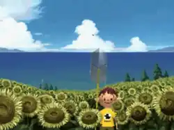 On the penultimate day of Boku's vacation, Shirabe goes missing, and Boku is able to track her to a large sunflower field. Shirabe, who has thus far been distant and irritable towards Boku, opens up to him and tells him that she does not want him to leave. On August 31, Boku's father returns to bring him home; as Boku departs while watching the Sorano family waving goodbye, his adult self narrates that it was a summer he would never forget.[6] The game concludes with an epilogue set twenty-five years later depicting Boku's life as an adult, with multiple possible scenarios contingent on choices made by the player throughout the game.[7]