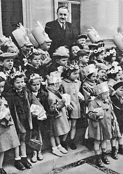 Bolesław Bierut ([bɔˈlɛswaf ˈbʲɛrut] ⓘ; 18 April 1892 – 12 March 1956) was a Polish communist activist and politician, leader of communist-ruled Poland from 1947 until 1956. He was President of the State National Council from 1944 to 1947, President of Poland from 1947 to 1952, General Secretary of the Central Committee of the Polish United Workers' Party from 1948 to 1956, and Prime Minister of Poland from 1952 to 1954. Bierut is believed to have worked as an NKVD informant or agent prior to 1945, although his relationship with the Soviet agency has been a subject of debate among historians.[1] As communist leader, he implemented aspects of the Stalinist system in Poland.[2] Together with Władysław Gomułka, his main rival, Bierut is chiefly responsible for the historic changes that Poland underwent in the aftermath of World War II. Unlike any of his communist successors, Bierut led Poland until his death.