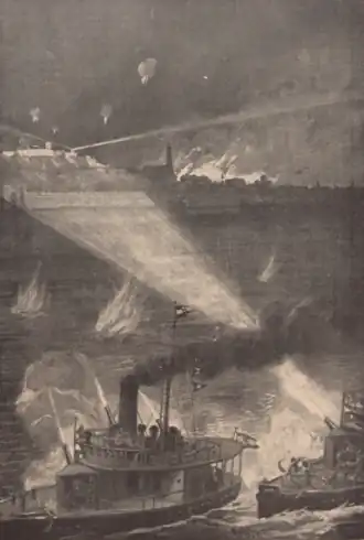 ![]() Shelling of Belgrade in the night of 28 and 29 July 1914 (German illustration, 1914) | |||||||