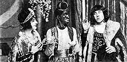Al Jolson as Gus between Queen Isabella and Christopher Columbus in a scene from Bombo.